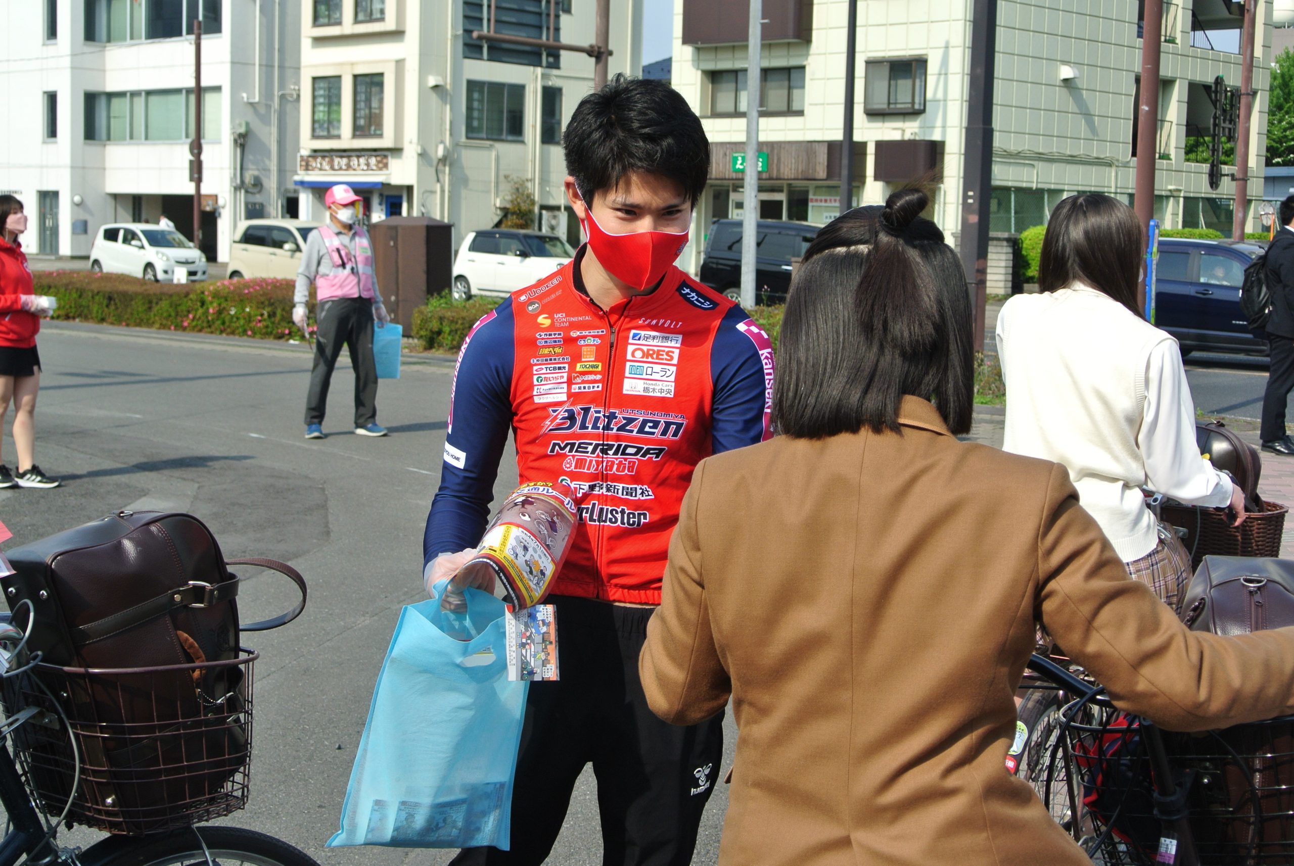 宇都宮ブリッッツェンからは西村大輝選手、貝原選手が参加。その他、ブリッツェンラヴァーズのYUU.とライトくんも参加し、通勤・通学ラッシュの時間帯(7:30-8:30)の桜二丁目交差点で、朝のあいさつと交通安全を呼びかけました。