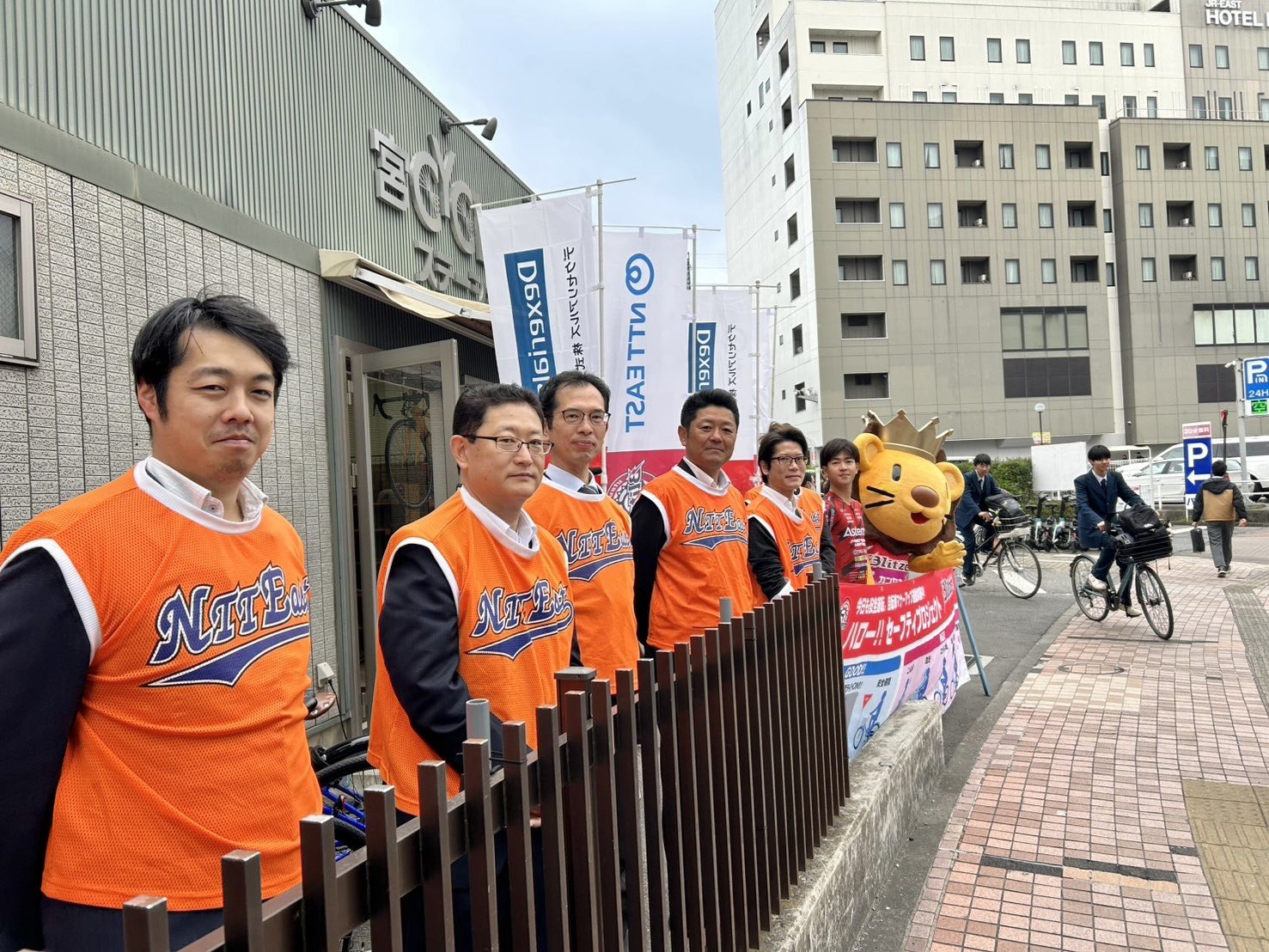 また、NTT東日本の皆さま、栃木県警の皆さまと連携し、朝の駅前を明るく見守るあいさつ運動として取り組みました。