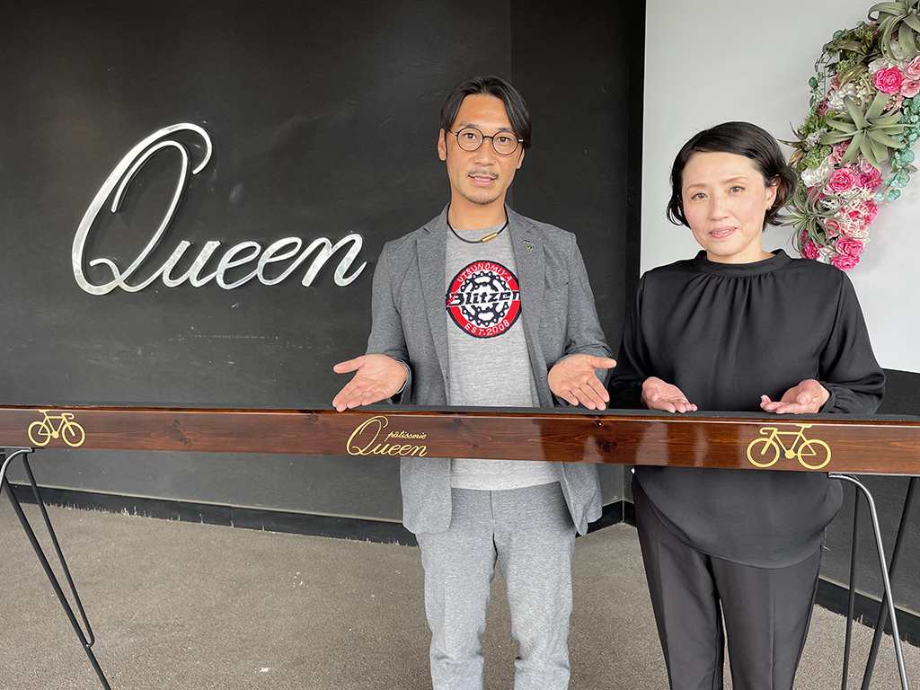 クイーン洋菓子店は、1973年にオープンして以来、多くの方に愛される老舗の洋菓子店です。広い駐車スペースもあるのでお車で行っても安心ですが、サイクリストに嬉しいバイクスタンドも設置されています。