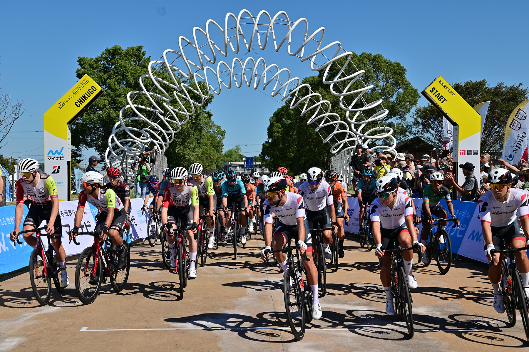 「35度ぐらいに上がる予報が出ていて、とても暑い。4人での出走となるが、このレースはワールドチームやプロチームがどうしてもレースをコントロールしてくるので、6人揃っていたとしても自分たちでレースを仕切れる可能性は低い。そういう意味で、人数が少ないということをあまりマイナスに考えずに。今日のコースはまた厳しいので、4人でしっかり前で展開していきたい。大分のレースのあとに九州に留まり、今日のコースを試走したが、周回コースで6回出てくる上りが、結構パンチがある。宇都宮ジャパンカップの古賀志林道に近い印象。うちのチームが得意とする短くてパンチのある上りではあるので、位置取りをしっかりして、上りで生き残れるようにしていきたい。とにかくまずは前にいること、第2ステージ以降のことを考え、今日、タイム差が開かないように、フィニッシュも前に残ることが大切。あとは逃げても有利に働くコースだと思うので、そこも意識してスタートしたい」