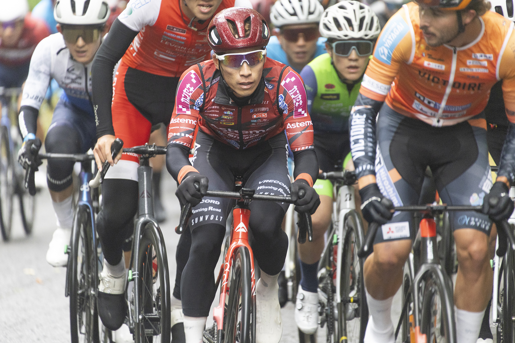 6周目になってようやく5名の逃げができ、9周目に2名が合流して7名となった。Astemo宇都宮ブリッツェンからは武山とフォンが入り、ほかの5名は孫崎大樹選手(ヴィクトワール広島)、菅原聡選手(アヴニールサイクリング山梨)小出樹選手、山里一心選手(以上アヴニールサイクリング山梨)、馬場慶三郎選手(弱虫ペダル サイクリングチーム)。集団との差は40秒前後を保ちつつも、集団からブリッジをかける選手が多数あり、レースがまったく落ち着かない。それもようやく11周目になると、Astemo宇都宮ブリッツェンとヴィクトワール広島が集団コントロールを始め、逃げと集団の差は1分10秒あたりとなり、逃げ切りの可能性も見えてきた。