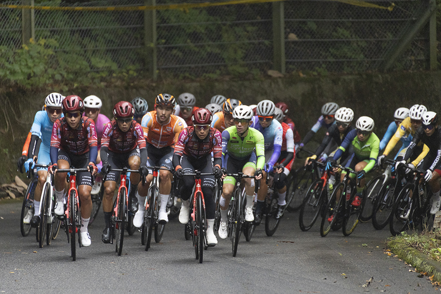 しかしそこに待ったをかけたのが寺田吉騎選手(Bahrain victorious development team)だ。オープン参加ではあったが、終始揺さぶりをかけていた。寺田選手は18周目で集団から飛び出し、武山とフォンのいる7名に30秒差まで迫る。次の19周目には寺田選手はつかまり、前の7名から2名ドロップして5名になるが、武山とフォンはそこに残る。ただ集団が5名に迫ってきており、5名は集団に戻ることを選択。吸収されてほどなくして単独で飛び出したのが、ベンジャミン・ダイボール選手(ヴィクトワール広島)だ。ダイボール選手は集団からあっという間に37秒差をつけ、これを金子選手、岡で追うシーンも見られたが、まだ早すぎると判断し集団に戻り、変わって阿見寺俊哉選手(アヴニールサイクリング山梨)、佐藤光選手(TeamCyclersSNEL)の2名がダイボール選手を追い始めた。この構造はレース残り2周まで続き、ダイボール選手と2名が40秒差、ダイボール選手と集団が1分差…がなかなか詰まらず、ダイボール選手の逃げ切りか…とまで頭をよぎる。