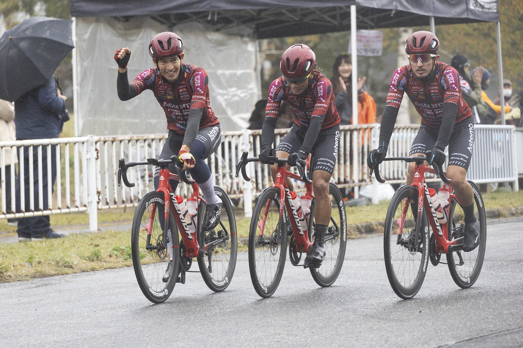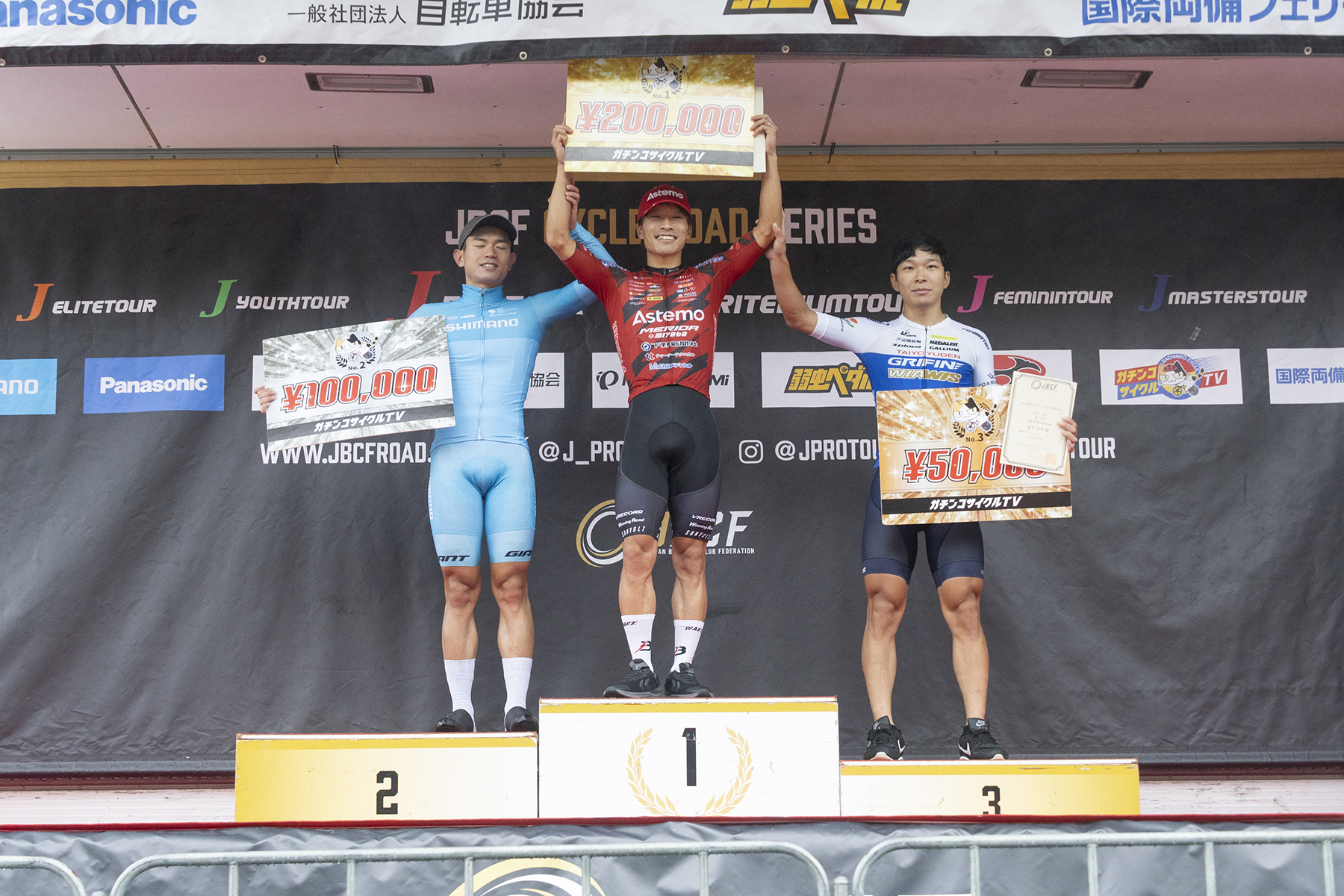 最後は「この3名でのスプリントでは自信があった」という岡がフィニッシュラインをトップで差し、見事、Jプロシリーズ最終戦で勝利を収めた。岡のスプリントも見事であったが、残り2周からのチーム力は、今年のチームを象徴する素晴らしいものであった。岡も「本当に今日は、チームのみんなのお陰で勝てた。みんなの頑張りのためにも、絶対勝たなければならないと思った」と、チームメイトへの感謝の気持ちを述べた。鈴木監督は「ダイボール選手を捕まえられるかどうか、ギリギリのタイミングだった」と勝負のタイミングに賭けをしたことを明かし、武山選手は「今季は早めに動きすぎて脚だけ使って終わることが多かったので、その失敗を繰り返さないように仕掛けをギリギリまで待った。こんなに気持ちよく走り終えられるレースはなかったので、とてもいい締めくくりのレースになったと思う」と清々しく語った。