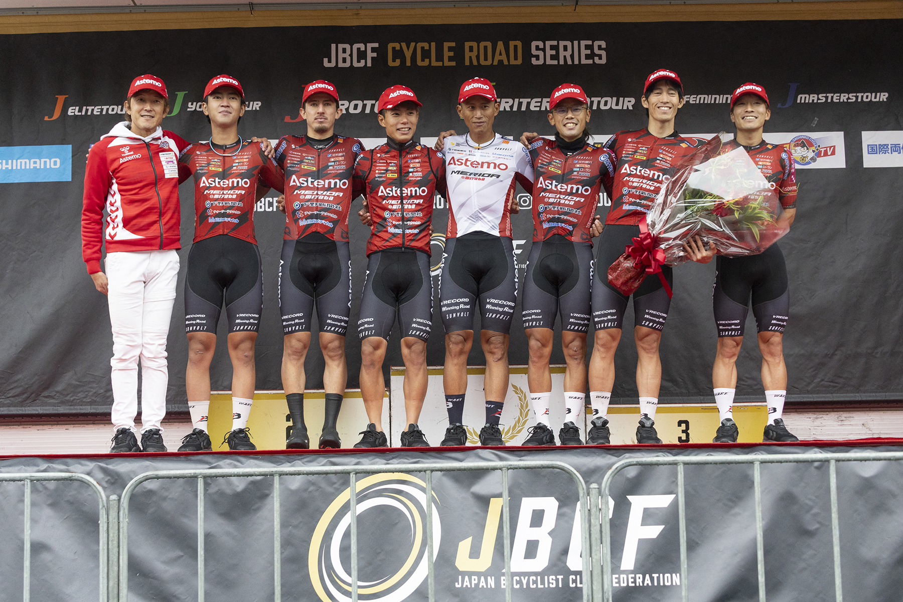 レースは11時30分スタートだったが、スタート前にJプロツアー登録選手の中の引退選手がコールされ、セレモニーがあった。Astemo宇都宮ブリッツェンは、その場にはいなかったものの、小野寺玲選手の名前が呼ばれた。
