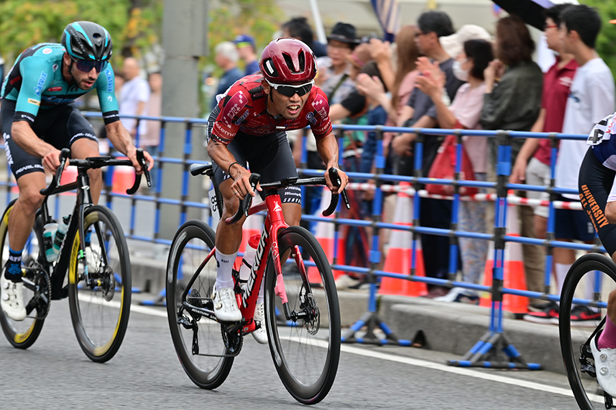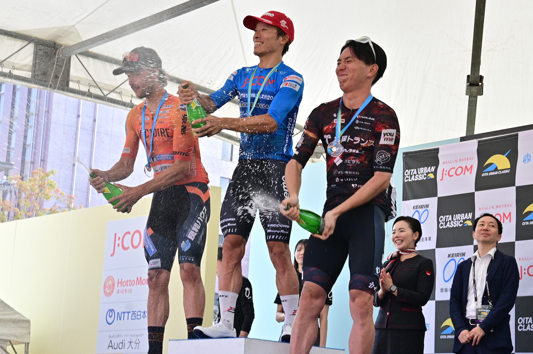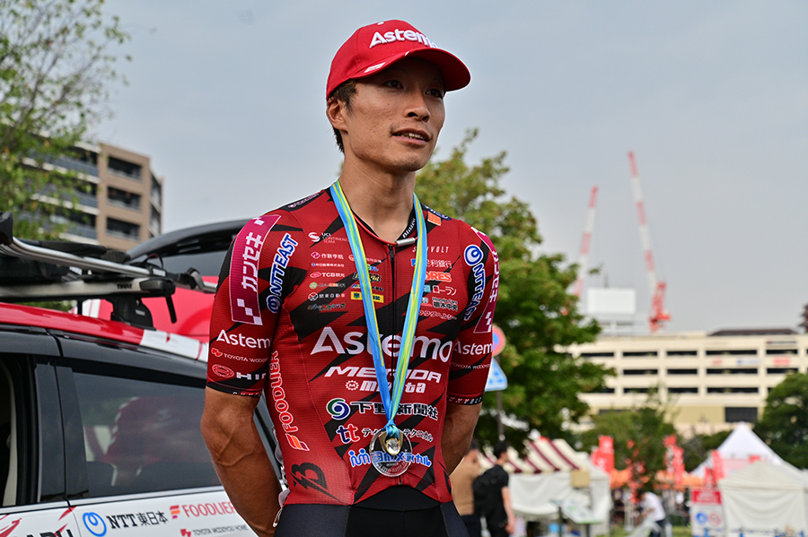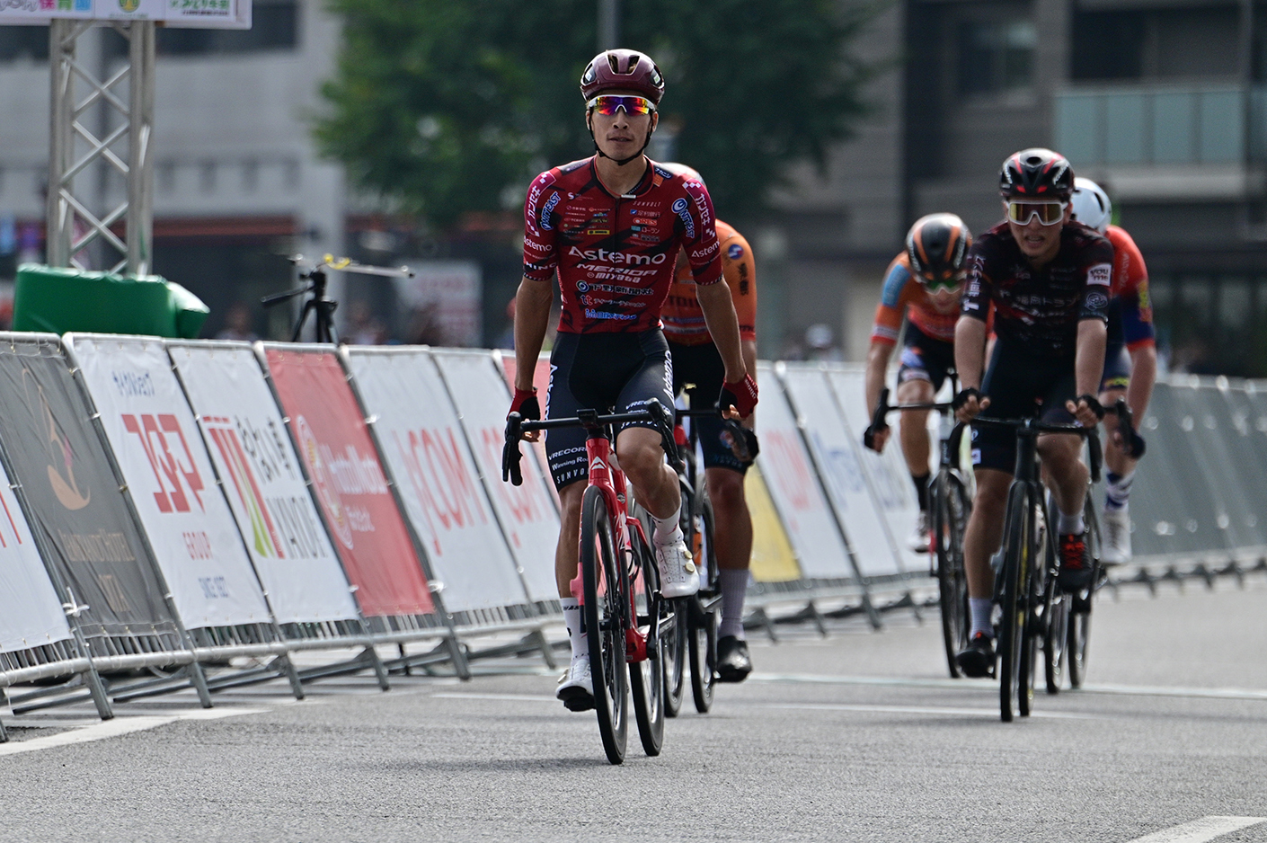 自分は集団スプリントに備えようとは思っていたが、かなり落車などもあって集団が伸びた展開に。その中でいい逃げの動きがあり、そこにうまく乗ることができたと思う。マイナースプリントが適用されたときは、脚を使いながらもタラマエ選手と抜け出せ、有利な展開に持ち込めていたので、ニュートラルが入り、少し複雑な心境ではあった。しかし冷静に、集団スプリントでも自信があったので、自分の勝ちパターンに持ち込めてよかった。今回は妻も大分までわざわざ応援に来てくれていたので、いい走りをしたいと思っていた。優勝ができて良かった。チームとしての本番は明日のロードレース。チームはみんな強いので、チーム一丸となって優勝を狙いたい。