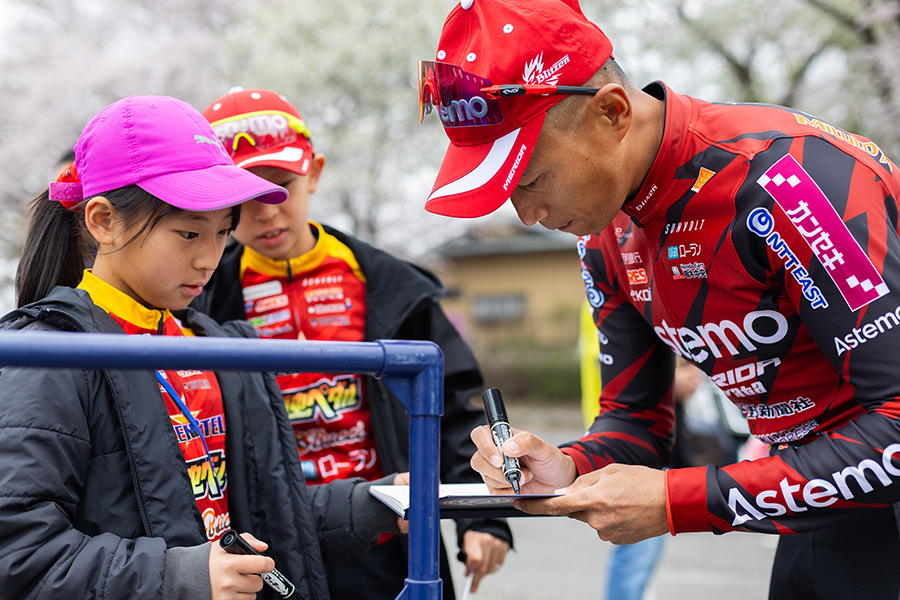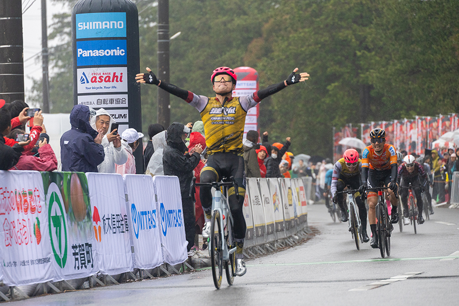 「自分自身も帰ってきた感じがあります。このコースを最後に走ったのは4年前です。Jプロツアー自体も4年ぶりの出走となるので単純に楽しみです。そして、今年は地元のブリッツェンに帰ってきて迎えるホームレースなので、みんなで意気込んでいます。なんとしても優勝したい気持ちです。(ツール・ド・台湾を終え、前回の広島のレースは出場せず、体を休められたかという質問に対して)もちろんです。リセットできましたし期間も空いたのでしっかりトレーニングも積めました。自分含め、みんないい状態でいられているかと思います。このコースは、基本的にきつい上りがありません。レースの結果を左右する要素としては風や雨です。そして、ホームストレート、コントロールラインを通過してから左右にコーナーがあるのでそのあたりの区間で、前、前で展開することが重要ではないかなと思います。いつも集団が割れるのは、8の字のように交差する部分。きょうは雨が降る予報なので、チームでいい位置でレースを進めたいです。チームとして誰かが優勝することが第一目標。フォンや岡をエースになどはありますが、とにかく誰が勝ってもいいように気持ちの準備をしたいです。谷選手も調子がいいですね。先週の広島のロードレースでも3位になりました。レース内容をみていても力がある選手です。きょうも優勝を見据えた走りをしてほしいです。地元のレース、チーム一丸となって優勝を目指して頑張ります。応援よろしくお願いします」